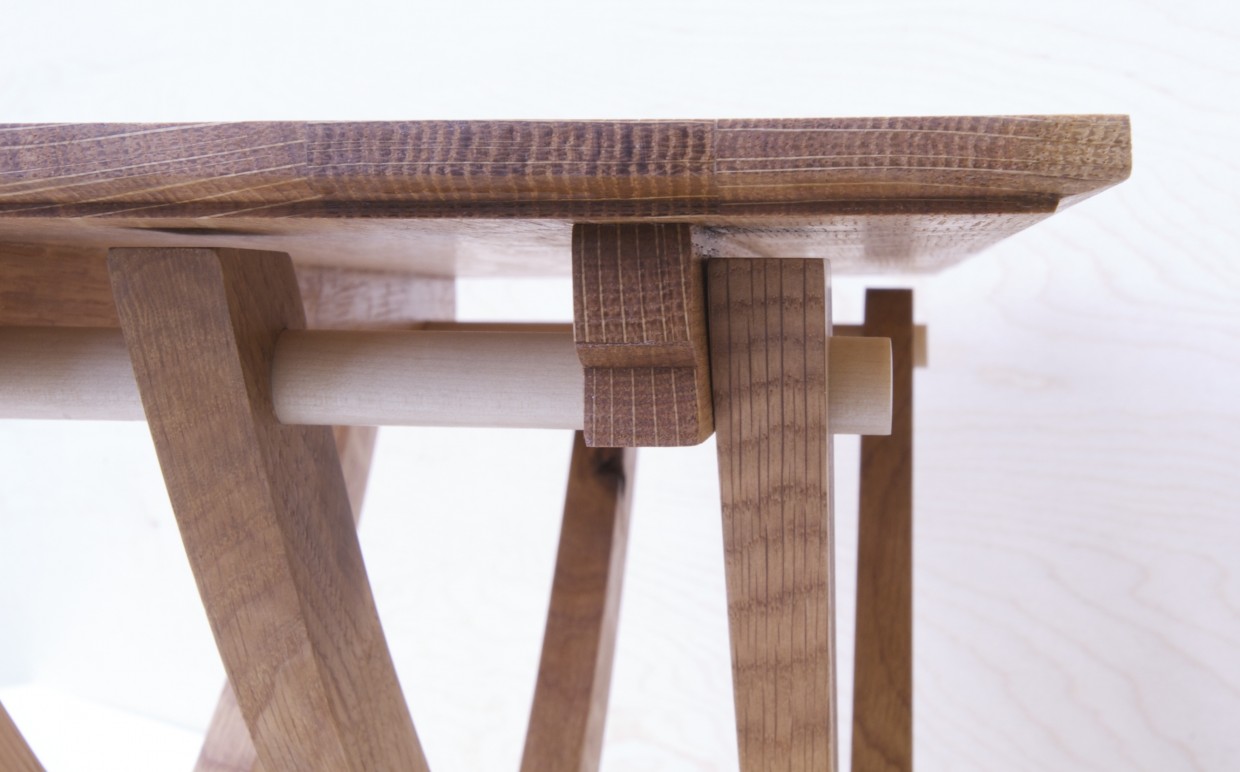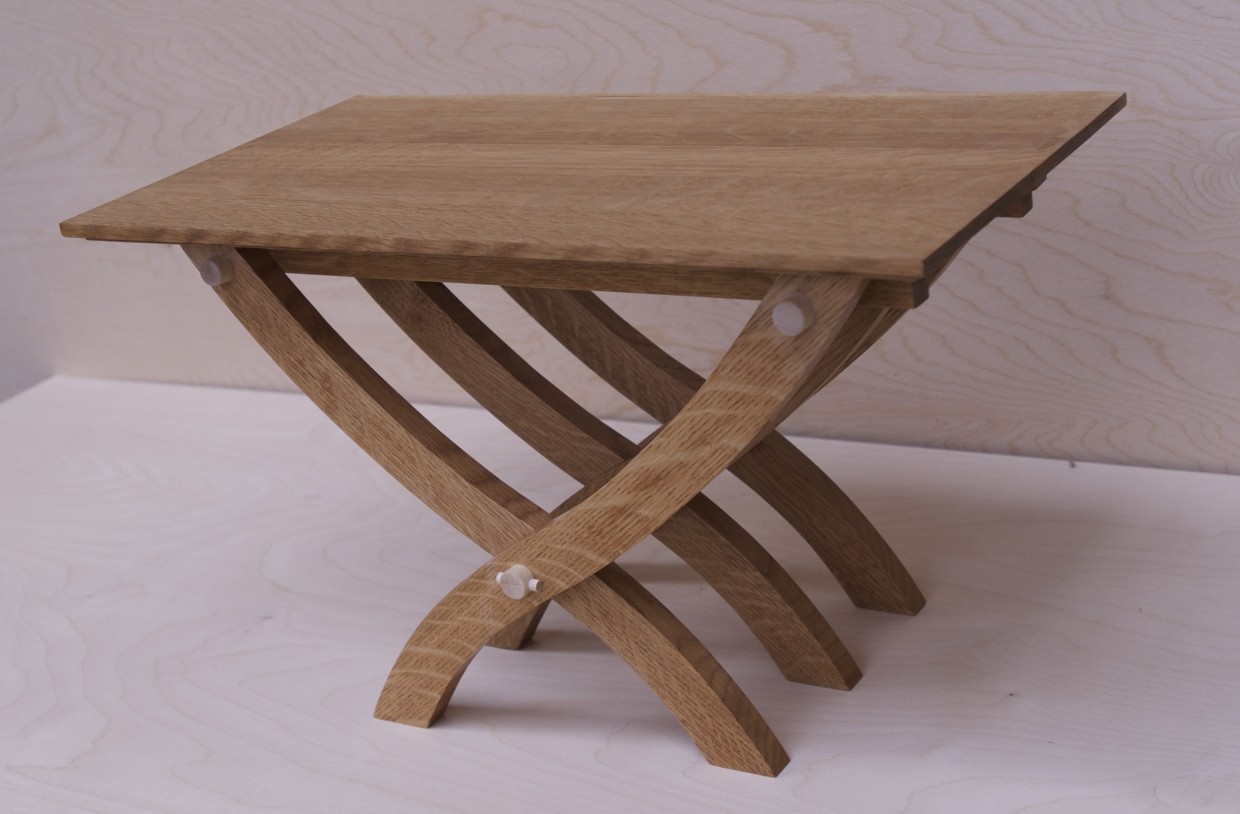 This small side table is designed to fit aside a lounge chair, for example. An unusual, even complex design, gives a great talking point with guests – or simply enjoy a cup of tea with it!